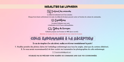 Vous avez besoin d'aide concernant une commande, la livraison ou autre chose ? Envoyez moi un message à tout moment pour obtenir de l'aide.